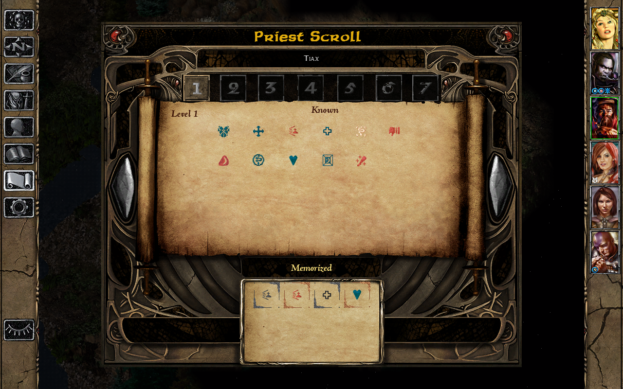 @SharGuidesMyHand - I don't know why Tiax had six 1st level spells before, but four is the correct number. As a second level cleric, he has a base of two 1st level spells, +1 for his 13 Wisdom, +1 for the Ring of Sune. So, I don't see a bug here. My guess is that Tiax's CRE file has too many 1st level spells memorized, and that is being corrected at level up.