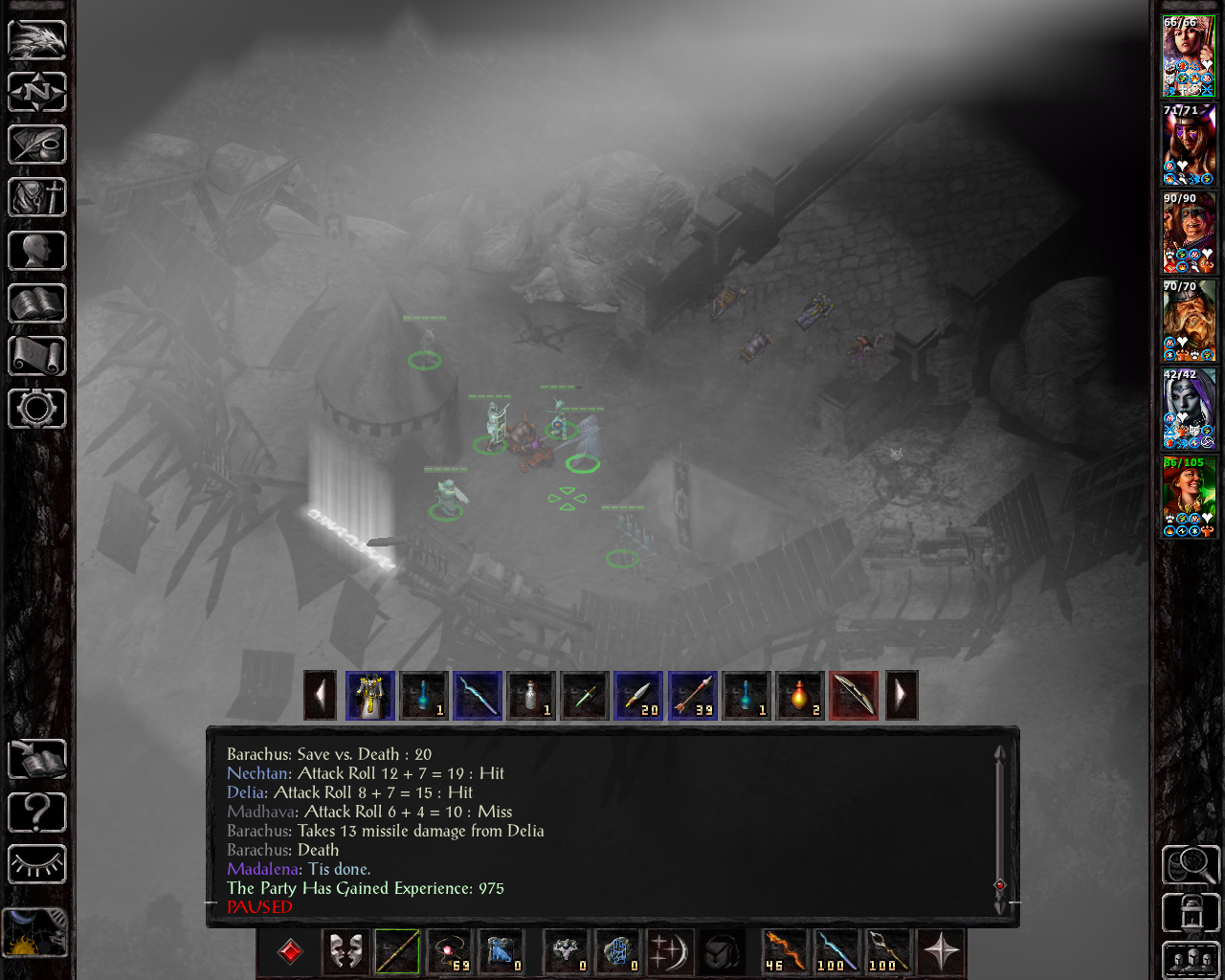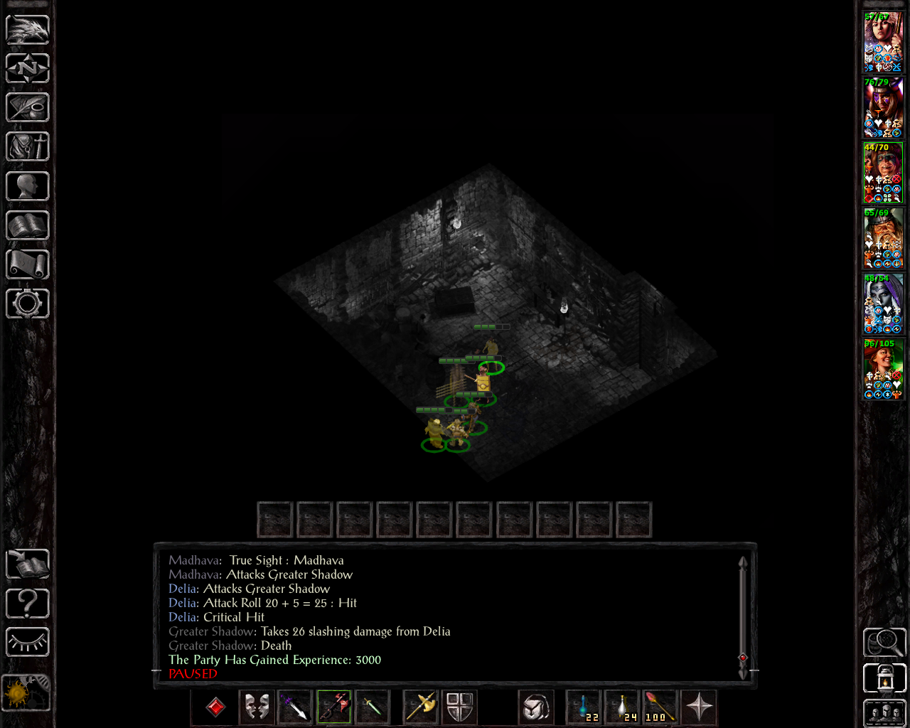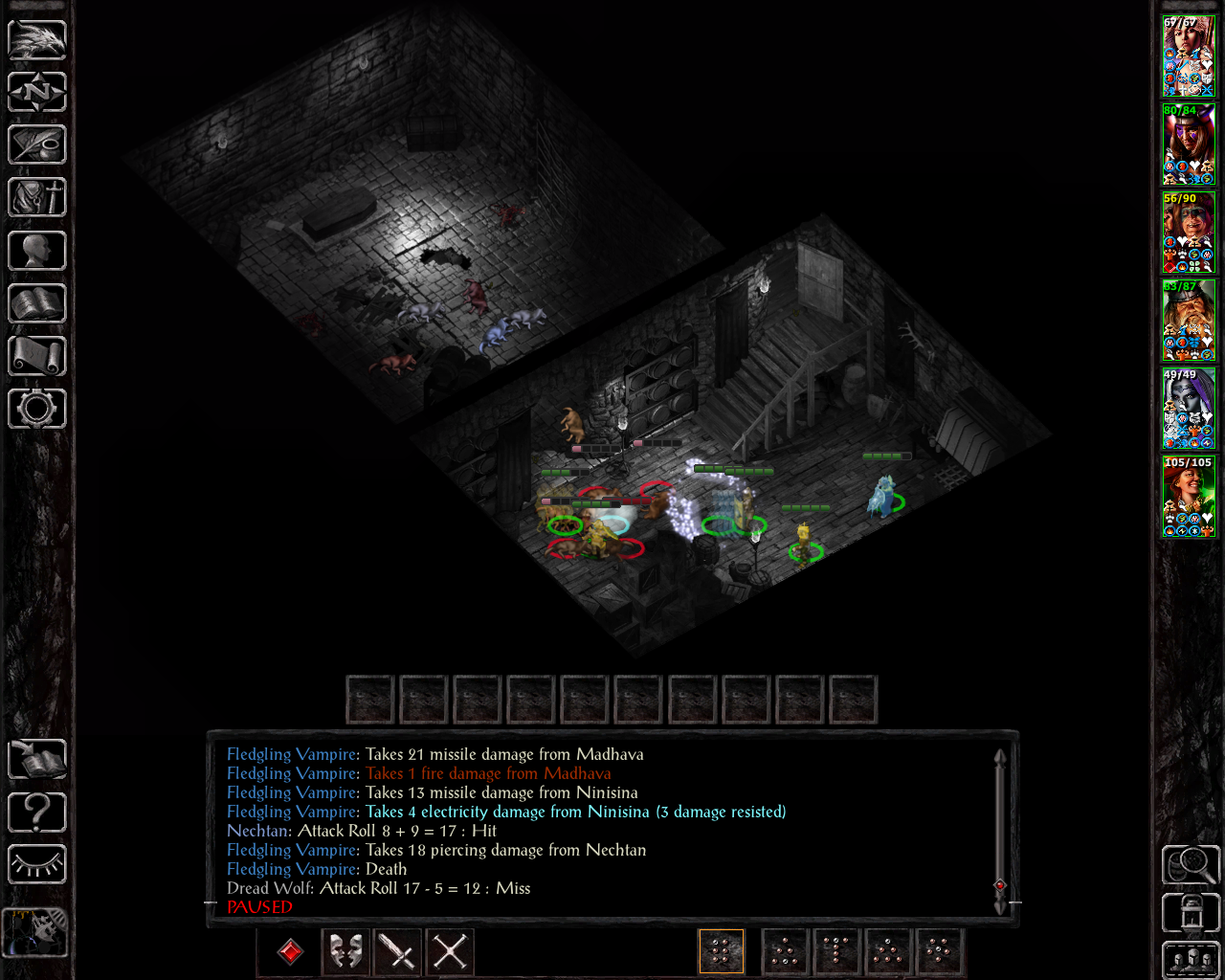 I've decided to take your advice regarding Bassilus (more on that in the next update); Regarding Leda, I agree that she will eventually be a frontliner, but for a triple class, it will take a long time to get the required spellslots, so I'm going to put a point in slings (she already has one via the randomization process; while bows would be better, triple classes don't get too many profiency points, so I'm working with what I'm already given) before going for more melee weapon skills. Delia will be forced into bows, I guess - not too happy with that, but she has our highest base dexterity and we need someone to use some of the powerful special arrows - as Ninisima is already locked into crossbows, she's the only remaining option. Note that, unlike in my last couple of runs, I currently intend to play SoD with this party if I don't die before that, so the investment in ranged weapon skills is worth quite a bit more.