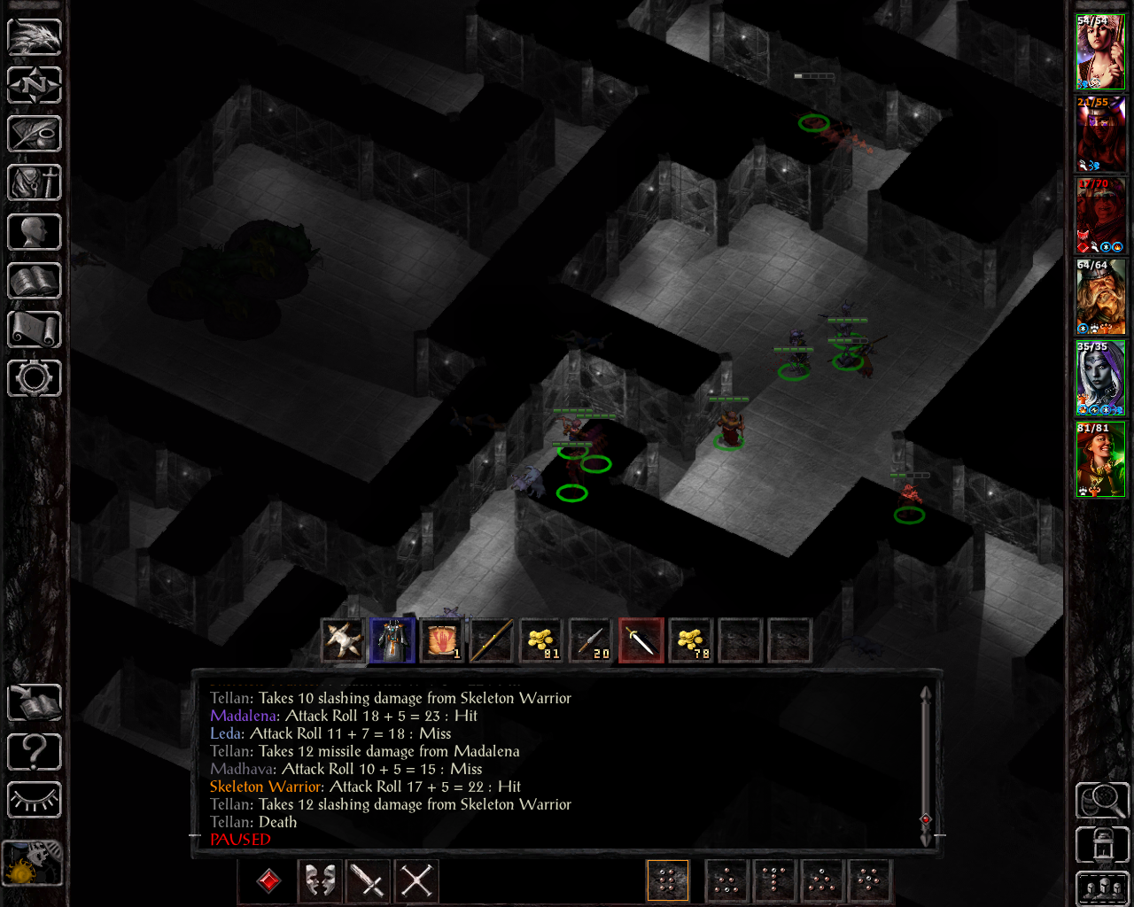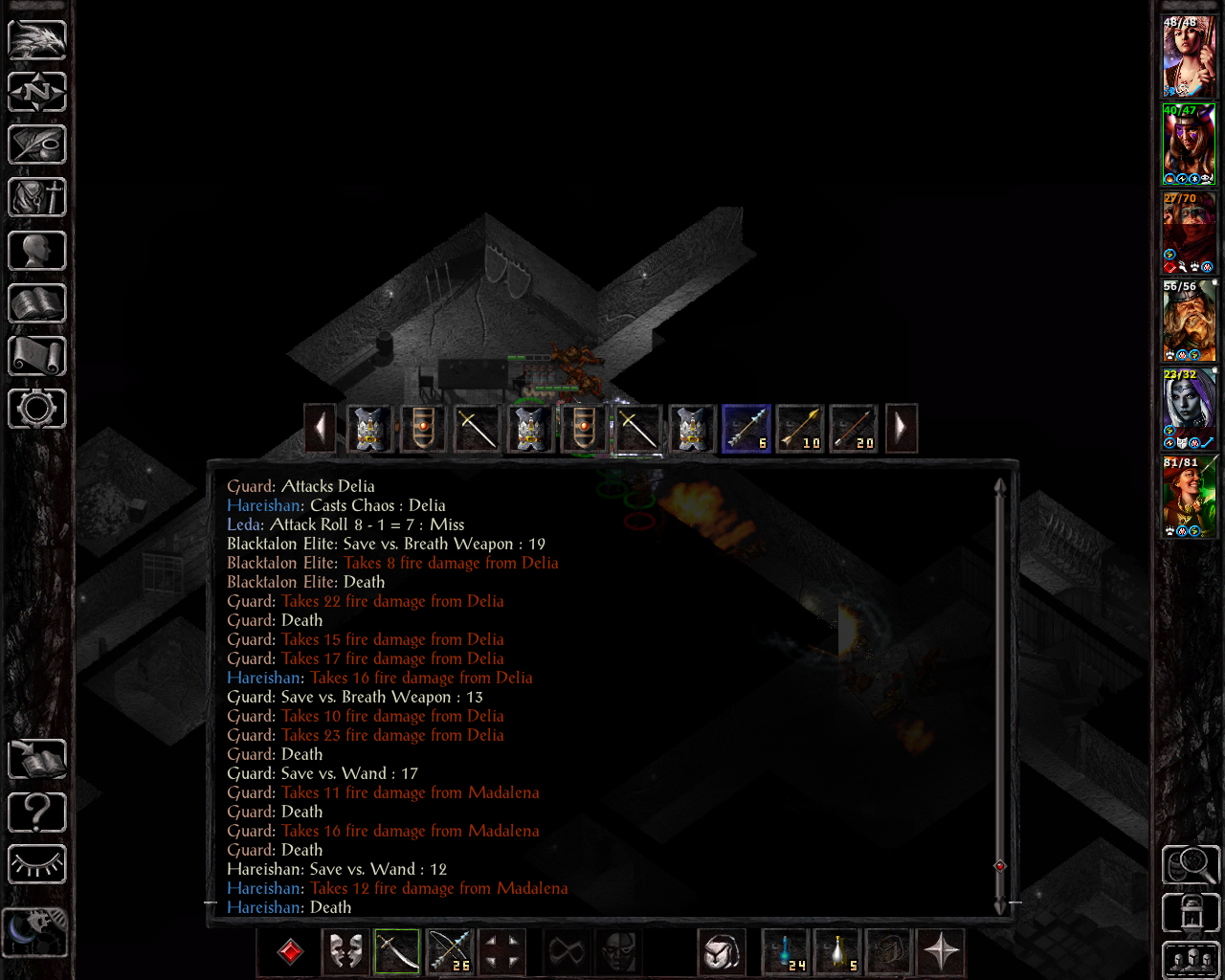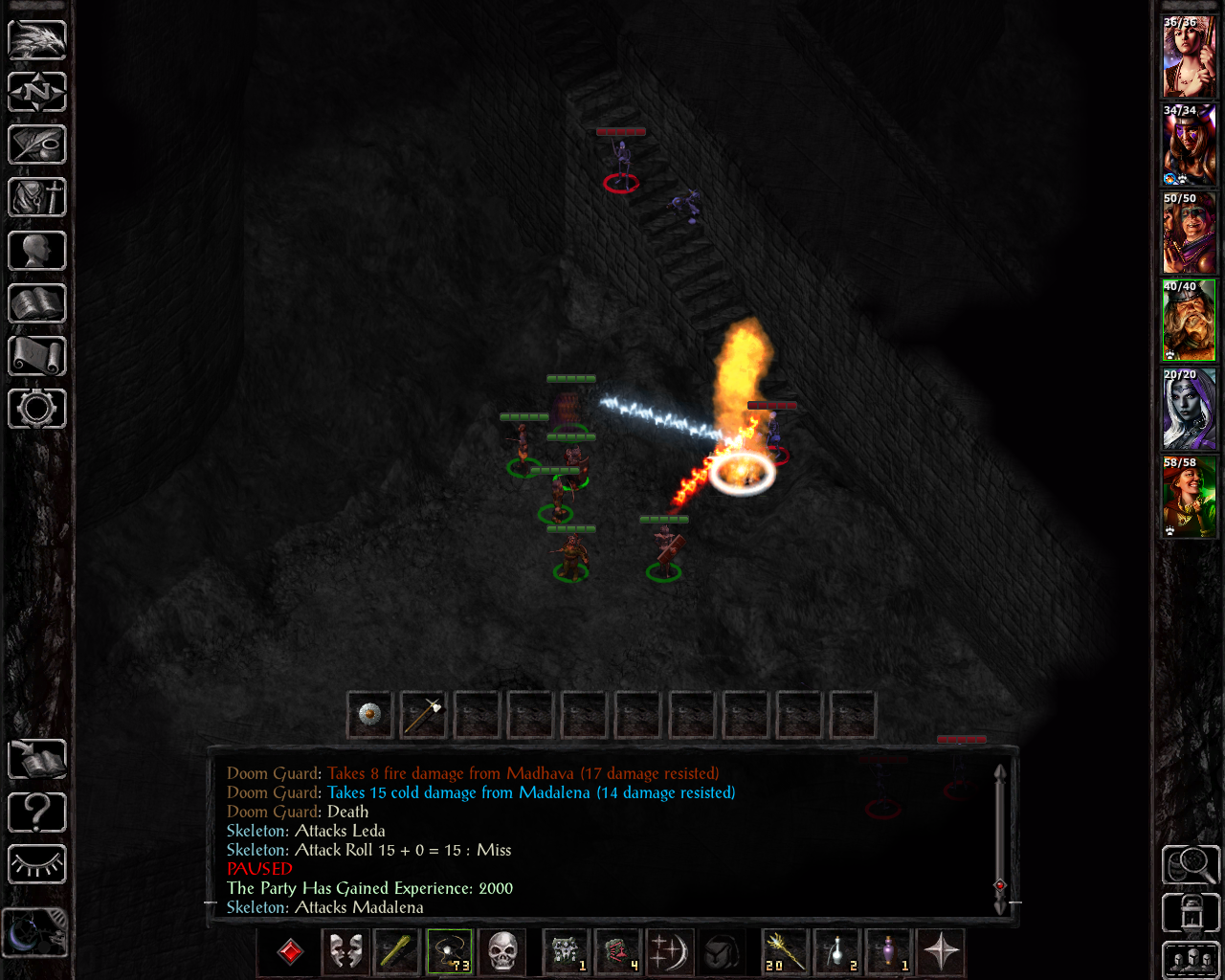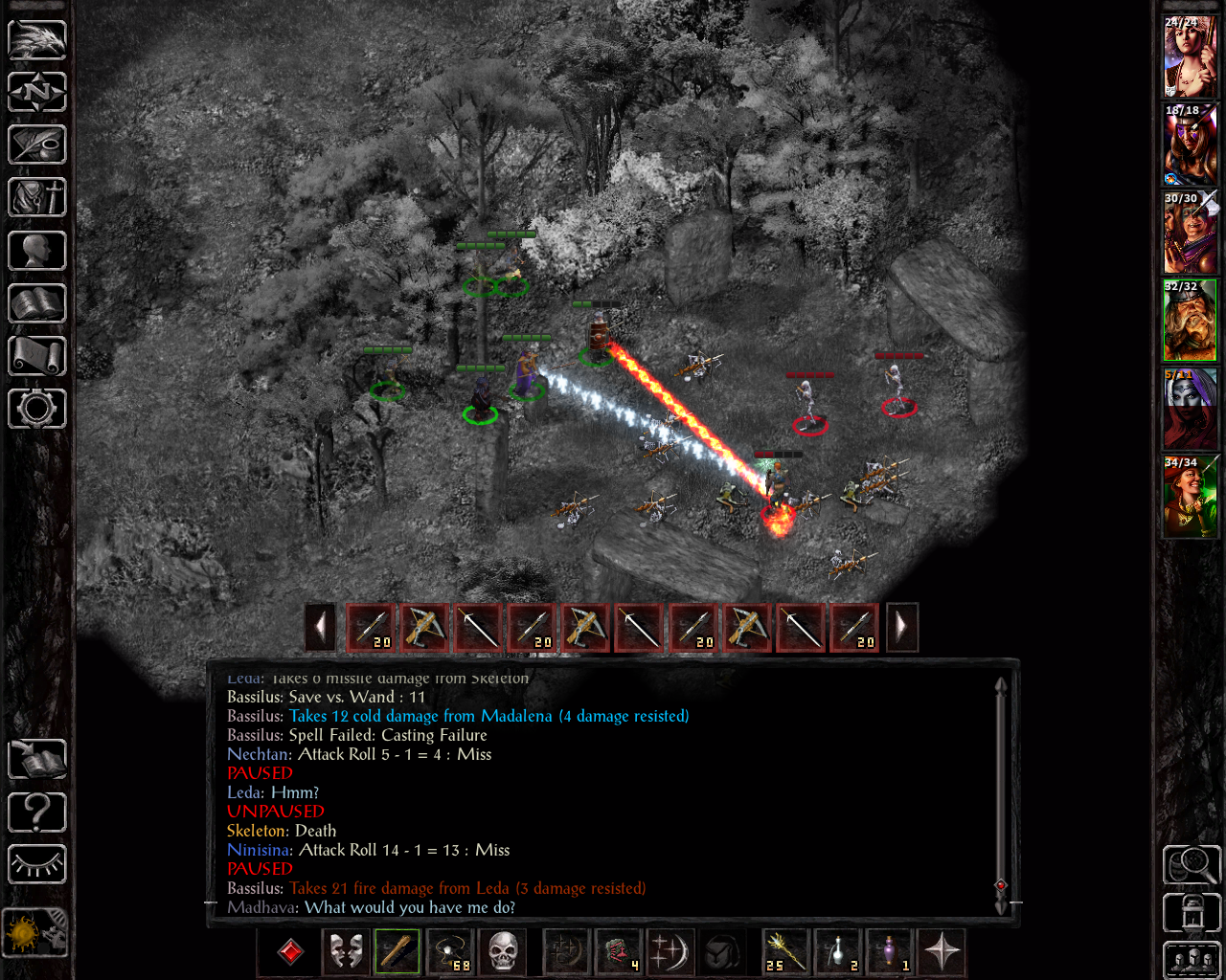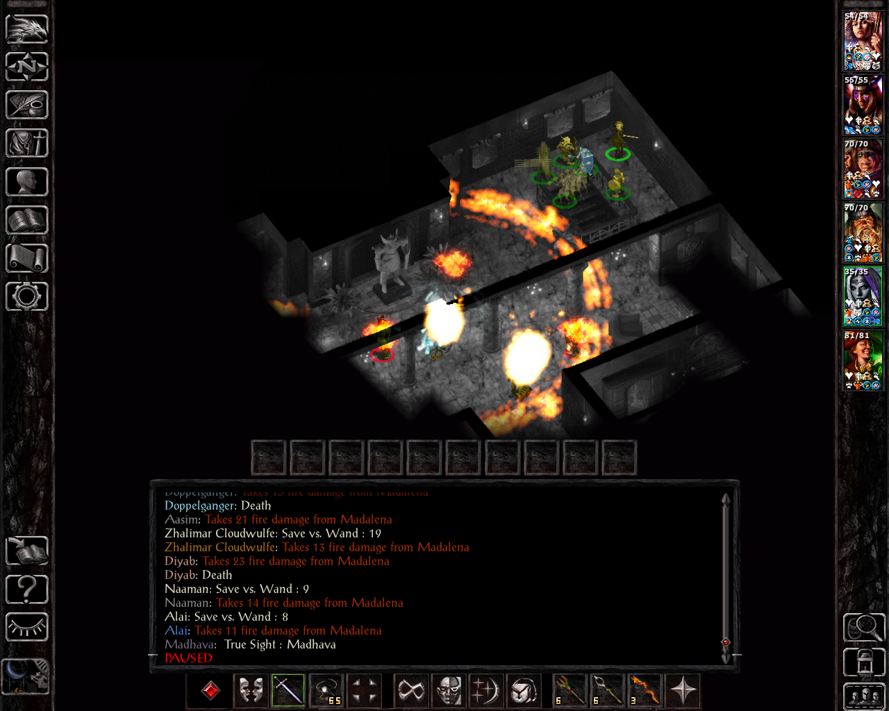 I kind of forgot how vicious these types of enemies get with SCS. Once again, Madhava goes for another resurrection. This time I didn't have fire resistance active on Madalena, so she could've been the target as well. Going forward, I was more careful about that and eventually started to also memorize minor spell deflection to block other direct damage spells as well (such as acid, electricity or cold-based sequencers). Considering that all three deaths we had in SoA so far have been due to fire damage, I ended up learning a second instance of fire protection on Leda herself to protect her low hp score soon after that as well.