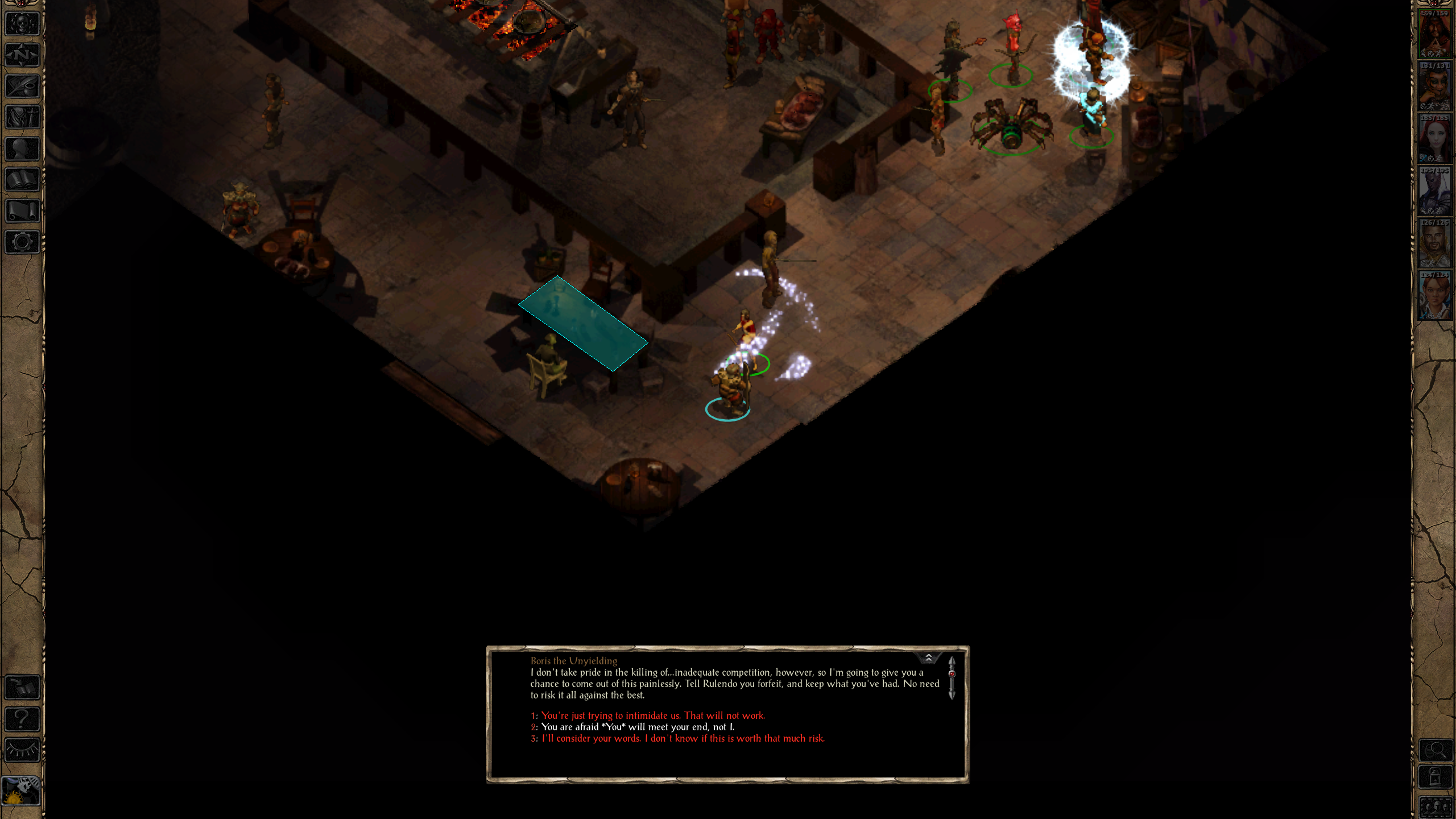 I'm having a slight problem with Rulendo and Boris – I get to this point in my conversation with the dwarf, and no matter which answer I choose, the conversation ends. Rulendo, on the other hand, won't let me continue fighting until I talk to the dwarf – which, despite my best efforts, I can't do.