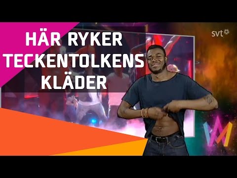 BTW - there is also a rather hot version of this interpretive zeal or truthfulness, where quite a ripped interpreter caused bit of positive stir by mimicking the actual Swedish ESC hopefuls by removing his T-shirt, as the two boys on stage singing about joys of swimming did. Do you wish me to dig and find it for you?
